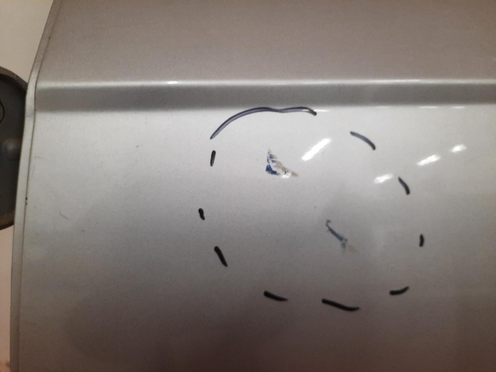 Widoczne ślady użytkowania, Rysy, Wgniecenia, Uszkodzenia widoczne i zaznaczone na zdjęciach, -jakość B && HYUNDAI GETZ I 02-05 5D DRZWI LEWY TYŁ LEWE TYLNE CS ![]()